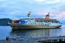PELNI boats KM. Sinabung from Surabaya stop at Jayapura, Sorong, Manokwari and Biak. This is a relaxing and interesting way to arrive if you have the time. PELNI provides a 3-class service, consisting roughly of economy, second class, and first class. Economy class lodging and service provides for a 2.5 x 7ft bed arranged side-by-side with other beds and comes with minimal meals and sanitary facilities (public bathroom). The second class service consists of a 4-bed room with basic meal services and a small private bathroom. First class service is nearly identical to second class, except that the room features a 2-bed room and a window for a view outside.