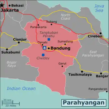 Parahyangan (or Priangan, Preanger) is a mountainous region in Western Java, Indonesia. The region is centred around West Java's provincial capital Bandung.