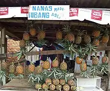 The city of Sumedang is known for its specific style of fried tofu, tahu Sumedang. Purwakarta's most famous dish is sate maranggi, a mutton or beef satay seasoned with among others soy sauce, ginger, and coriander, and served only with sliced onion and tomatoes and without sauce. Garut's contribution is the dodol snack, a sticky sweet made of coconut milk, jaggery, and glutinous rice flour. The smaller mountain towns all have their own specialty when it comes to food production, with Lembang known for the fresh cow milk (during the colonial time the Dutch found Lembang to have a good climate), Ciater and the Subang region for pineapples, and Ciwidey for strawberries.