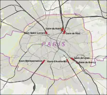 - 🌍 Gare de Bercy, (12th), Métro: Bercy. Regular trains to Auvergne and Burgundy.