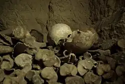 - 🌍 Les Catacombes de Paris (Catacombs of Paris), 1 place Denfert-Rochereau (Denfert-Rochereau 4 6 B ). Tu-Su 9:45-20:30; last admission 19:30; closed Mo and public holidays. One of the most eye-popping sights of Paris, the catacombs represent a network of labyrinthine tunnels, first excavated in the Roman period, that now house the remains of over 6 million burials removed here from the various overcrowded cemeteries and charnel houses all over Paris in the late 18th and early 19th centuries. Well worth a visit: the atmosphere is suitably morbid and gloomy (without being too scary), the dark tunnels containing neatly stacked piles of skulls and long bones. There is a limit to the number of visitors allowed within the Catacombs at one time (200 persons). So, if you arrive just after opening, you must wait until someone exits, approximately 45–60 minutes, before anyone is admitted. Steep stairwell on the exit of the catacombs. Can be challenging for the elderly or the unfit. Tickets can be purchased online at a small premium (€29, includes audioguide), allows you pick a date&time and to skip the long line Adults (audioguide incl.): 29€, Reduced rate (audioguide incl.): 27€, Children (4 to 17 yo): 5€ ; Adults (same day “last minute”): 15€, Reduced rate (same day “last minute”): 13€, Children (under 18): free; Audioguide: 5€.