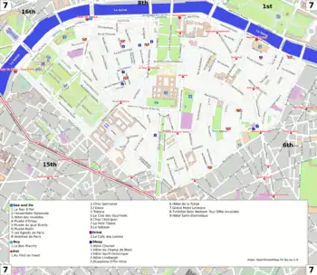 - 🌍 Hôtel Saint-Dominique, 62, rue St Dominique, ☏ +33 1 47 05 51 44, fax: +33 1 47 05 81 28.