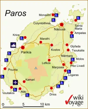 Paros is a major island of the Cyclades group. It is one of the most popular holiday destinations for visitors to the Greek islands. Paros is considered as one of the most beautiful islands of the Cyclades. It is characterized by the many beaches and also the charming villages: Parikia (the main town), Naoussa, Lefkes, Marpissa and other.