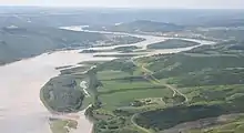 The city sits on the banks of the Peace River, at its confluence with the Smoky River, the Heart River and Pat's Creek. The Peace River townsite is nearly 1,000 feet (300 m) below the relatively flat terrain surrounding it. There are various First Nations (Aboriginal) communities to the northeast, French-Canadian farming communities to the south and to the east, and Mennonite and Hutterite German-Canadian farming communities to the north and northwest of the town.