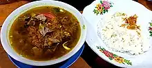 - 🌍 Nasi Megono RM Tjukup, Jl. Manggis sebelah PLN Pekalongan No.10, Sampangan, East Pekalongan, ☏ +62 877 567 77798. 7AM-4PM. Nasi megono is a typical rice dish of Pekalongan Regency made from pieces of young jackfruit with a blend of grated coconut. It is usually served with mendoan, black cooked squid, balado egg, tempeh orek, cucumber, and chili sauce.