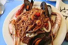 Classics of the local cuisine include suquet (fish stew with saffron and tomatoes), esesxaida (red salad with peppers), llagosta i pollastre (dish based on lobster and chicken), bullinada (fish and seafood pot), llagostada (lobster simmered in olive oil with sofregit - sauce), or cargollada (barbecued snails).