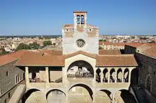 - 🌍 Castillet, Place de Verdun, ☏ + 33 4 68 35 42 05. Tu-Su 10:30-18:00. Also known by its Catalan name Castellet and as Porte Notre-Dame, this fortified 14th century city gate is the symbol od the city. It was built on orders by John I of Aragon, as part of a larger project to improve the city's fortifications. There are two buildings, the 31 meters high dungeon which is the Grand Castillet, and next to it the Petit Castillet which the French built in 1478. The complex later functioned as a prison, and it was spared from being torn down in the 19th century modernization frenzy. Today the building houses a museum of folk art and traditions and there are nice views of the city from the terrace at the top. €4.