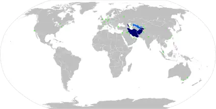 Today, Persian is mainly spoken in Iran, Afghanistan, Tajikistan, Uzbekistan and Bahrain. It has official status in the first three countries but was once the official, court, or literary language of many more places ranging from Turkey through India. At this time, many Persian poets emerged from the Indian subcontinent, Central Asia and the regions under the control of the Ottoman Empire. It is still appreciated as a literary and prestigious language among the educated elite. Many people in Iran and neighboring countries know Persian fluently even if it's not their mother tongue. The Persian Empire was historically much bigger than today's Iran before losing many territories, especially to its neighbor Russia. After the 1979 revolution, many Iranians migrated to the West and as a result, there are numerous Persian-speaking communities throughout the world, particularly in the USA. Persian is the second language of Islam so in many Islamic countries you can find someone knowing Persian.