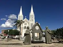 - 🌍 Catedral Sagrado Coração de Jesus e Cristo Rei, Praça Dom Malan, S/N - Centro, Petrolina. The Cathedral of Petrolina is one of the city's most recognisable and attractive sights, built in Neo-Gothic style and inaugurated in 1929. In front of the cathedral lies the O presente de Padre Cícero a Dom Malan sculpture, that represents the scene of Padre Cícero, one of Brazil's most popular religious leaders, giving the cathedral's clock as a gift to the first bishop of Petrolina, Don Malan. In the north side of the cathedral lies the Concha Acústica (acoustic shell), built in Modernist style in 1973 and that resembles an open bible. This space is used for public performances and events, but when it is not holding one, the place should be avoided as it is a hanging place for drug addicts.