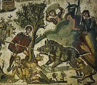 - π Villa Romana del Casale, Palazzo Trigona - Piazza Cattedrale 20, Piazza Armerina (5 km southwest), β +39 0935-687667. Apr-Oct: 09:00-19:00; Nov-Mar 09:00-17:00; Jul Aug: F-Su hours extended to 23:30; last entry 1 hour before closing. One of the highlights of Sicily, with the remains of a large number of rooms covered by a huge canopy to protect the numerous elaborate mosaics which are much more impressive than those at Pompeii. In fact you can tell what the room was by the mosaic. For instance, there is a mosaic with a rather rotund man getting a massage, then being washed down to enter the baths. After the baths the room shows the man drying off with a big fluffy towel. With that you know the first room was to get relaxed before entering the baths and so on. Also very interesting is the mosaic of the "Girls in Bikinis" depicting women working out in a gym.