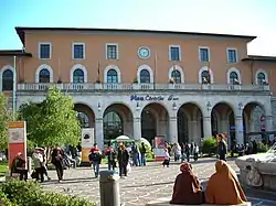 • 🌍 Piazza Garibaldi and Piazza XX Settembre. Two opposing town square, one at each end of Ponte di Mezzo (middle bridge), and are considered the centre of the city. From Piazza Garibaldi starts Borgo Stretto, an old street with lots of shops that, together with Corso Italia starting in the opposite direction from Piazza XX Settembre, create a pedestrian area (interrupted only by the bridge) that is considered the centre of the city. In Piazza XX Settembre you can find the Logge dei Banchi, a building created to host textile market in 1600, and the town hall, in the Palazzo del Comune.
