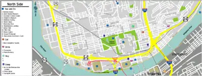 Due to the proximity of most North Side attractions to Downtown, it is quite easy to get from there into North Side by walking. Four bridges - the I-279, 6th St., 7th St., and 9th St. Bridges - have pedestrian walkways. During Pirates and Steelers games, the 6th St. Bridge is closed to vehicular traffic, making it a pedestrian bridge.