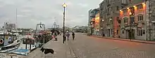 The Barbican has a number of restaurants and bars lined up along the quayside - notably few serve fresh locally caught fish ; a local peculiarity for a fishing city - North Sea cod is generally only served battered and fried, with chips.