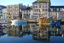 - π The Dolphin, 14 The Barbican, PL1 2LS, β +44 1752 660876. Public house on the Plymouth Barbican, perfectly kept Bass drawn straight from the barrel and the last traditional drinkers' pub. The Dolphin features in many paintings by Plymouth's great artist, Beryl Cook, and has a long running folk music session Sunday lunchtimes.