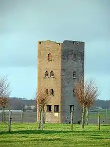 - π German Tower (Duitse Toren), Westvleterseweg. This 13-m-high German observation tower was built in 1940 during the Second World War as part of a military airfield (Fliegerhorst) just outside Poperinge. When the airfield closed in 1941 and became rural area again the tower fell out of use. Today the tower stands in the middle of the field and can only be seen from a short distance.