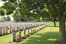 - π Nine Elms British Cemetery, Helleketelweg. 1615 war victims are buried here, of which 1593 are killed during the First World War and about 20 victims and 2 unidentified losses from the Second World War.