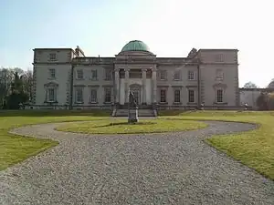- 🌍 Emo Court, Emo R32 C44V, ☏ +353 57 862 6573. Grounds daily 08:30-16:30. Grand neo-classical mansion, designed by Gandon in 1790 but construction took another 70 years. Then at last the Earls of Portarlington could enjoy it and entertain in glittering style, but these were the final halcyon days of the Protestant ascendancy. Arms Quarterly 1st & 4th, Barry nebuly of six Argent and Gules, over all a Bend engrailed Azure . . . (and so on, at some length) somehow didn't enthrall an independent Republic of Ireland. The family left, and the house lay empty until 1930, then was a Jesuit college until 1969. Not wishing to sully their pious gaze with Grecian nymphs, the Jesuits chucked the statues in the lake. The estate was bought by Major Cholmeley Harrison, who restored the house, fished out the statues and opened the gardens to the public. House and gardens are now curated by the Office of Public Works, but the house itself is closed for restoration until 2022.
