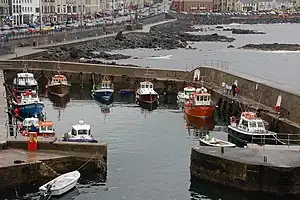 Portstewart is a beach resort, historically in County Londonderry in Northern Ireland. The town is in Causeway Coast and Glens District, and in 2011 had a population of 8003. It was a small fishing village until it grew up as a resort in Victorian times, and is now encrusted by holiday homes. The beach is the main attraction, and a few miles east of town are the big tourist sights of the Causeway Coast.