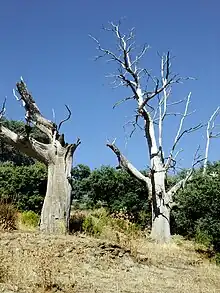 Fuente Agria is on the outskirts of the village. There is a parking area with picnic tables etc., a small chapel, or 'Ermita', and a spring from which emerges health restoring but sour tasting water. Below this there is a small gorge, where you can see how the iron in the water has stained the surrounding rock faces orange. A set of steps has been made down into the gorge.