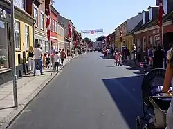 - Retail stores. Almost all of the retail stores in the town is placed in the centre of town on Adelgade which runs east-west parallel to the seafront, one street up. This includes a music store, several fashion shops, sports equipment, combined optician, jewelry and watch shop, a delicatessen store, electric equipment, household equipment etc.
