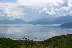 Prespa (Macedonian: Преспа) is a region surrounding the Great Prespa Lake and Small Prespa Lake. This international region is shared by Albania, Greece, and North Macedonia, which contains a majority of the Great Prespa Lake. North Macedonia's share of the region is completely within Resen Municipality, bound by Galičica National Park to the west, Pelister National Park to the east, the borders with Albania and Greece to the south, and northern parts of Resen Municipality to the north.