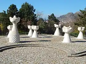 - 🌍 Mound of the Unbeaten (Могила на непобедените). A World War II memorial built in 1961 to honor the Prilep area's fallen in the Struggle for the Liberation of Macedonia. It consists of memorial urns made of marble, almost resembling life-sized chess pieces. The site also contains a crypt housing the remains of 462 soldiers whose names are inscribed on the marble slabs. It is part of the larger Park of the Revolution which features busts of prominent local heroes. The site is in area of greenery with scenic views of the surrounding mountains. A memorial service occurs here every 11th of October.