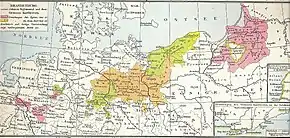 Prussia (Preußen) was a feudal state, later a kingdom and finally a republic in central Europe, existing from early modern times to 1945. Its centre was in the northeast of present-day Germany, but at the height of its power it also controlled most of Germany's northern half, vast parts of today's Poland, and—at least temporarily—bits of what now is Denmark, Russia, Lithuania, the Czech Republic, Switzerland and Belgium.