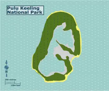 Pulu Keeling National Park (Malay: Taman Negara Pulau Keeling) is a national park and Commonwealth reserve in the Cocos (Keeling) Islands, protecting the entire North Keeling Island. At 1.2 km2, it's one of the smallest national parks in Australia. The park belongs to the Cocos Malay people, comanaged with the federal government.