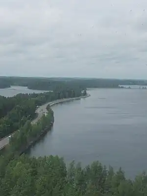 Highway 14 between Parikkala and Savonlinna passes through the town, and continues along the ridge.