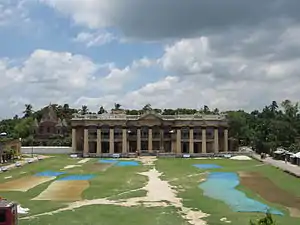 The Puthia Raj family, of which the town is named, eventually came to own the area some time in the 16th century. The head of the family, Bhatsacharya, was given the title of a zamindar (wealthy Hindu land-owner) by the Emperor. Their family built a number of temples and palaces on the site, surrounding the lake with a sprawling lawn. The Puthia estate flourished, and it went on to become the second-largest and wealthiest zamindary in all the Indian subcontinent. After the partition of India, the new Pakistan government revoked all zamindars of their titles and land, and the family fled to India soon after.