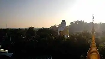 - 🌍 Shwe Sandaw Pagoda (500 m east/southeast of the Main Station, on the hill). This pagoda offers the perfect view to take pictures of the giant, sitting Buddha (Sehtatgyi). 3,000 kyat (take the stairs to avoid it).