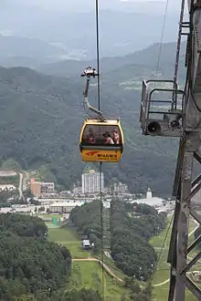 - 🌍 Yongpyong (Dragon Valley) Ski Resort (용평리조트), 715, Olympic-ro, Daegwallyeong-myeon, ☏ +82 33 335-5757. Yongpyong ski resort offers skiing in winter, and golf in the summer months. It is the largest ski and snowboard resort in Korea. The ski season runs from November to early April. It has 31 slopes, 15 different lift facilities, including one gondola at a length of 3.7 km (2.3 mi), and Korea's largest ski house (Dragon Plaza).