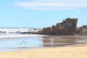 The wreck of The Jacaranda, which has been high and dry on the beach since 1971. It's about an hour's beach walk from the Trennery's Hotel, which has a map at reception for 4x4 enthusiasts, complete with GPS co-ordinates showing you how get there.