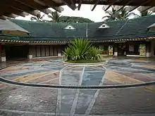 - π Liwasang Aurora. A circular paved plaza decorated in a style of a compass rose. Along with the adjacent stage, the Liwasang Aurora serves as the venue for various events such as concerts held at the Quezon Memorial Circle.