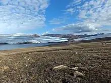 The land is dominated by rock and ice. It is a polar desert with very little annual precipitation.