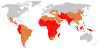 • Chagas disease — Pronounced with a "SH" sound, and endemic to mainland Latin America and parts of the Caribbean, roughly from Mexico to central Chile and Argentina. (The Mexican border regions with the U.S. are safe, except for Matamoros. Most cases are in the southern half of Mexico.) It is a parasitic disease spread by triatominae (blood sucking bugs) and blood transfusions, and there is no vaccine against it. Unlike mosquitoes, bites are usually along the face. Never scratch these bites, as this is the main mode of infection. Chagas disease starts with little to no symptoms, but for 20-40% of all victims, it slowly develops into a chronic heart disease, and sometimes stomach disease. This can take decades, in some cases. Treatable with benznidazole or nifurtimox if caught early. Sleeping in thatched huts poses the greatest risk. If you stay in standard tourist accommodations, it's very unlikely you would get this disease.