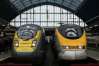 London St. Pancras is the terminus for Eurostar high-speed trains to Amsterdam, Brussels, Lille, Paris, Rotterdam and seasonal French destinations such as Avignon, Lyon and Marseille (summer service) and the Alps (winter service). Connections to many major European cities can be made in Lille, Brussels, Paris, and through tickets are available from Eurostar, RailEurope and staffed ticket offices to European destinations. Eurostar operate two different classes of rolling stock; Alstom's British Rail Class 373 (or Eurostar E300) which have been in service since the Channel Tunnel opened 1994, while BR Class 374 (Eurostar E320) have been progressively entering service since 2015, and are built by Siemens. The e320 is part of the Velaro family of which other localised variants were bought by RENFE (AVE), DB (ICE) and the Russian railways (Sapsan) among others.