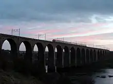 - Stonehaven-Aberdeen: The line north of Edinburgh to Aberdeen crosses the iconic Forth Bridge. At its northern end, between the pretty harbour town of Stonehaven and the "Granite City" of Aberdeen it runs for 20 minutes or so along a dramatic, craggy coast with spectacular cliffs soaring down into the north sea. Rugged inlets and churning waves breaking on the rocks add to the scene. The route is especially impressive at sunrise (as may be seen if taking the sleeper from London to Aberdeen)