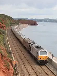 - Exeter-Penzance (including part of the Riviera Line): Designed by the famous engineer Brunel as part of his Great Western Railway, this line runs from Exeter, Devon to Penzance, Cornwall and includes long stretches where the railway runs directly on the sea wall, such as at Dawlish. It also runs through lush valleys, past the dramatic Dartmoor, crosses viaducts by Brunel and enters Cornwall by the impressive Royal Albert Bridge across the River Tamar (pronounced TAY-mar). Images of waves breaking by the railway line at Dawlish are iconic of Devon. The stretch between Exeter and Newton Abbot is especially pretty, as the train travels along the sea wall through the pretty coastal towns of Starcross, Dawlish and Teignmouth (pronounced "Tin-muth"). Keep you eyes glued to that window for that 15- to 20-minute stretch!