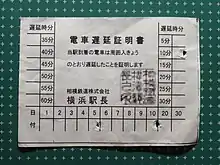 Visitors are usually astounded to find that Japanese trains, like other forms of mass transit, nearly always leave and arrive promptly on time, following the published schedule to the second. If you are late, you will surely miss the train! If you are affected by a delay, you can in fact, apply for a delay certificate either from the station, or by accessing the rail company's website. This is particularly essential for people working in Japan, as you may be penalized for being late should you not present one to your boss.