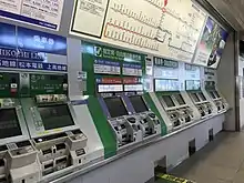 Making a reservation is surprisingly easy, and is strongly advised for popular journeys (such as travelling from Tokyo to Kyoto on a Friday evening, or taking a train from Nagoya to Takayama). Many JR stations have ticket machines where seat reservation tickets can be purchased; the newer machines have multi-language options in English, Chinese and Korean. Alternatively, look out for the JR Office at the train station, which bears a little green logo of a figure relaxing in a chair - and ask to make a reservation when you buy your ticket. The reservation can be made anywhere from a month in advance to literally minutes before the train leaves. Note that the opening hours of the manned ticket offices (dedicated to long distance travels) are more limited than the ones for local trains: they may be closed early in the morning or late in the evening.