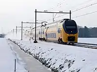 The Nieuwe Intercity Dubbeldekker, abbreviated as NID or DDZ, are modified DD-AR and mDDM sprinter trains dating to the 1990s. The DDZ is known to have run both as an Intercity and Sprinter service, making it the only Sprinter stock to not feature the white-blue-yellow colour scheme. The DDZ is outfitted with wireless internet and a toilet, with first class extras being a reclining chair, power outlet, reading light, footrest and a lectuurnet. These trains have been out of service because of rapid wear to the wheels and brakes, but are slowly being reintroduced onto the network in December 2021, starting with the Intercity service between Roosendaal and Zwolle.