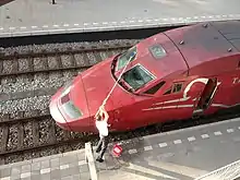 Crime on trains - aside from occasional pickpocketing and "misplaced" luggage - is rare but should you feel threatened or harassed, talk to a conductor if you can find one - not all trains are staffed with more than just one conductor. Sadly enough, the conductor is more often the target of harassment than a traveller, often for simply doing his job. Treat railway staff with the same respect you'd have for a policeman. If no conductor is to be found, look around. Often you will either find an 0800- phone number on stickers in your wagon or find a noodtelefoon (emergency phone), labelled with SOS either at a central location of your wagon, or at the wagon's balcony. Call this number or press the button to talk to the operator's staff that will help you out as well as inform the appropriate emergency services. Do not use the emergency brake unless you've been told to by staff, which, even in the case that it is necessary, is very unlikely. Using the emergency brake locks the train for some time, stopping it from continuing on the tracks. By engaging the brake you're not only making life-threatening situations worse by making it more difficult for emergency service to reach the train, you're also making many people very mad by causing a delay on their daily route. Also, misuse of the emergency brake (Noodrem) is often severely punished, most often in the form of a large fine. No matter the severity of the situation, the Noodrem may never be used in a tunnel.