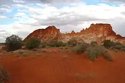 The Rainbow Valley Conservation Reserve is a scenic natural reserve consisting of various formation of sandstones and rock in the Northern Territory of Australia, 100 km south of Alice Springs. The reserve is a popular daytrip from Alice Springs.