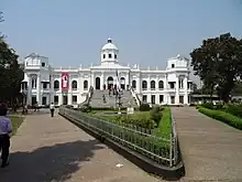 - 🌍 Tajhat Palace, Tajhat Rd (3 km south–east of the town), ☏ +880 1915-898532. A white palace surrounded by a lush garden. It is a former zamindar's palace. After the end of the British Raj, the building was abandoned and decayed rapidly. In 2004, it was largely restored and turned into a museum which hosts a collection of Blackstone Hindu carvings, calligraphic art from the Mughal period, other objets d'art, and coins. Probably this place was built by Maharaja Kumar Gopal Lal Ray in the beginning of the 20th century. The palace was used as a Rangpur High Court branch of the Bangladesh Supreme Court in 1995. Tk20.