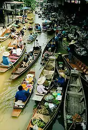 - 🌍 Damnoen Saduak floating market. It shows the people's lifestyle and the importance of the river as a mean of commerce. The vendors paddle their boats up and down the waterways selling and bartering their merchandise. The markets start in very early morning until 11:00.