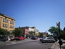 - π Riddle Blocks (intersection of Main and Chestnut). are unique, historic brick buildings built in the late 19th and early 20th centuries, commissioned by H.W. Riddle, owner of Riddle Hearse Co. The original Riddle Block is on the southeast corner of the intersection of Main and Chestnut, and once held and opera house. The other Riddle blocks are numbered and scattered throughout downtown. The words "Coach Hearse" are faintly visible on one of the Riddle blocks that can be seen when entering downtown from the south on Prospect.