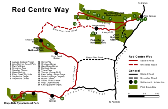 Having just spent a few days driving around the Red Centre, you probably won't want to drive anywhere. However, if you do want to take your car out, the Stuart Highway runs from Darwin to Port Augusta via Alice Springs.