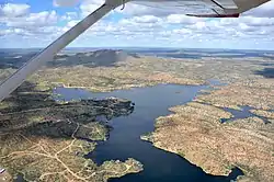 - 🌍 Lake Oanob Resort (Turn westwards from the B1 about 8km north of Rehoboth. The resort is well signposted.), ☏ +264 62 5222370, fax: +264 62 524112, reservations@oanob.com.na. For day visitors: 08:00 to 20:00. Oanob is a dam outside Rehoboth built in 1990. The resort opened in 1994. You can swim here, fish (permit required!), hike, do water sports, camp, and grill meat. There is also a restaurant and a bar, as well as a pool for the days that the dam is empty or the water is too cold to swim in. The camp site is popular with Windhoekers and therefore often fully booked on weekends. The camping spots vastly differ in luxury, from a sandy spot behind the bird cages to grass-thatched lapas with wooden decks overlooking the dam. Make sure you check the spot allocated to you before you pay. The 4x4 self drive is not worth the time. Neither is it a 4x4 track, any car will do, nor will you see anything spectacular except the length of the dam and a bit of wildlife. If you are day visitor and you want to set up a braai (barbecue) you will have to book a camp site at half price. If you walk around the bush wear proper shoes; the area teems with scorpions and snakes. Admission into the resort: 30 N$ per person, kids under 12 free. Large boats 300 N$, small boats 150 N$, jetskis: 250 N$ * Canoe hire: 30 N$ per half hour * Aquacycle hire: 60 N$ per half hour, kids 40 N$ * Speed boat ride: 150 N$ for 20 minutes, kids 80 N$ * Nature drive: 200 N$ for 90 minutes, kids 90 N$, minimum 400 N$, 2 drinks included * 4x4 self drive: 50 N$ per person * Camp site accommodation 90—150 N$ per person depending on the site, kids half price. There are also bungalows.