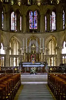 - 🌍 Cathedral (Notre-Dame de Reims), Place du Cardinal Luçon. The French equivalent, somewhat, for England's Westminster Abbey, the cathedral at Reims was the church in which numerous French monarchs were officially crowned. Reims is one of the later Gothic cathedrals and renowned for its height. There is a fine interior west facade with carvings of Biblical scenes; some fine 13c stained glass in the high windows of the nave and choir; and windows by Marc Chagall (in the eastern chapel) and the two local artists Jacques and Brigitte Simon. The south transept window by Jacques Simon shows themes linked with champagne including a portrait of the monk who invented it, Dom Perignon.